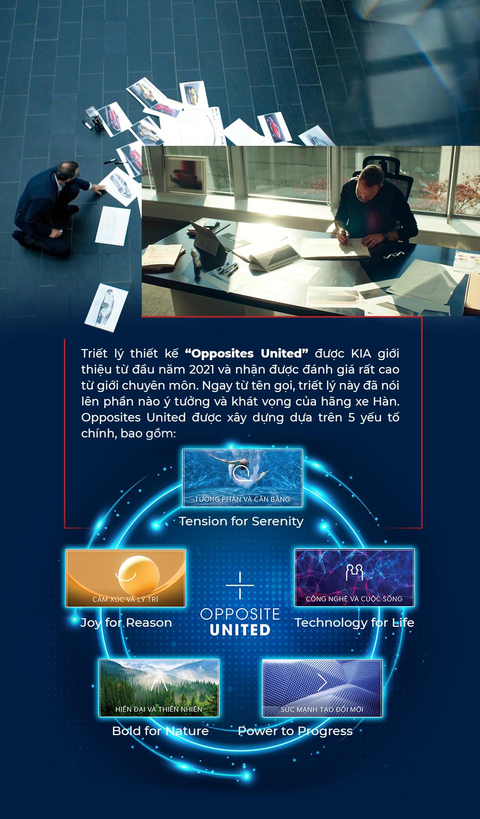 Và không để khách hàng phải chờ đợi, ngay từ đầu năm 2021, hãng xe Hàn đã lập tức biến “Plan S” thành hiện thực. Bắt đầu bằng việc chuyển đổi tầm nhìn từ một nhà sản xuất phương tiện phục vụ nhu cầu di chuyển, trở thành nhà cung cấp giải pháp di động thông minh (Smart mobility solutions). KIA đã nhanh chóng “lột xác” với logo nhận diện thương hiệu mới, và đặc biệt hơn cả là thế hệ sản phẩm đột phá, được ra đời từ một triết lý hoàn toàn mới của hãng xe Hàn, có tên gọi “Opposites United”.