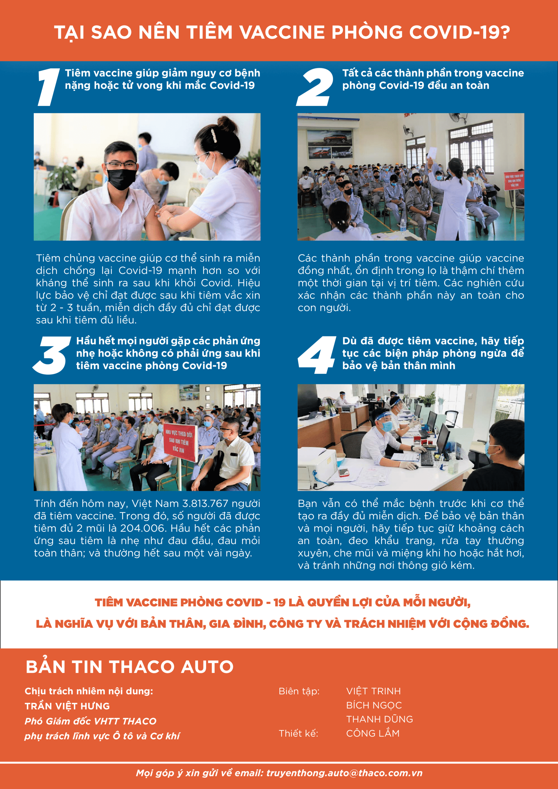 Kính gửi Ban Lãnh đạo, CBNV THACO AUTO ấn phẩm bản tin nội bộ số 157 với các nội dung nổi bật: Đàn ông hiện đại, không ngại việc nhà; Tại sao nên tiêm vaccine phòng Covid-19?