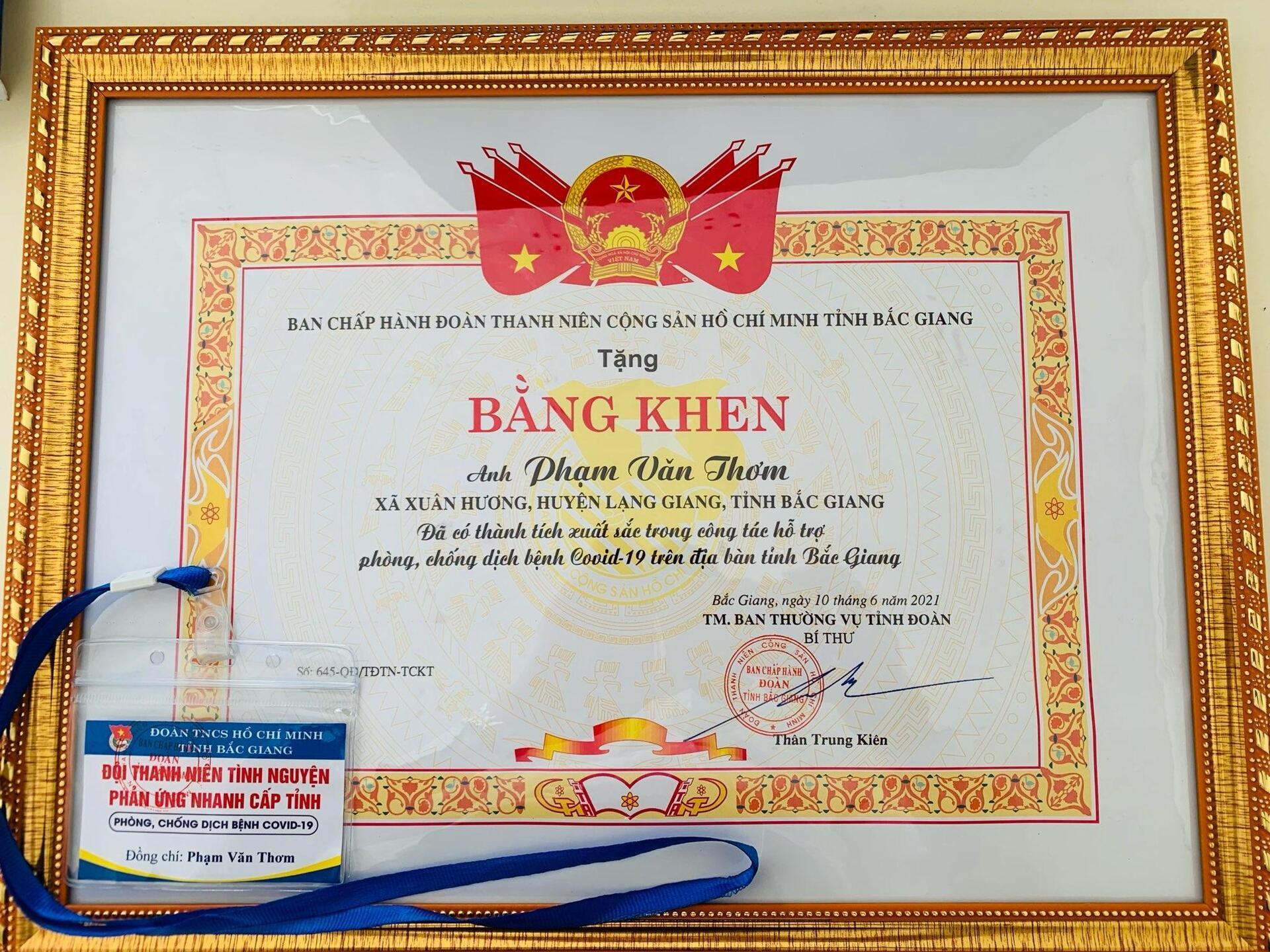BOX: Tham gia tình nguyện đã giúp Thơm trau dồi thêm cho nhiều kĩ năng làm việc đội nhóm, tinh thần đoàn kết và có thêm nhiều mối quan hệ. Với sự nhiệt huyết, năng động của mình, Thơm đã vinh dự nhận được bằng khen của Tỉnh đoàn trong công tác hỗ trợ phòng, chống dịch bệnh tại địa phương.