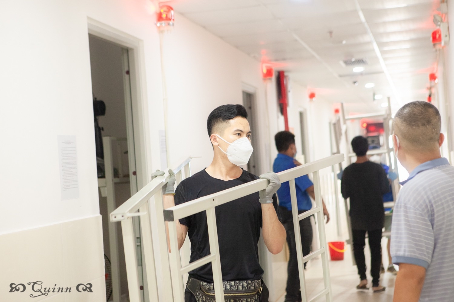 Những ngày đầu tham gia, anh Thơm vận chuyển nhu yếu phẩm từ các địa phương khác gửi về. Không nề hà, ngần ngại bất cứ việc gì, nên chỉ cần khâu nào thiếu người, bộ phận nào cần hỗ trợ, anh đều có mặt. Vì có sở thích nấu ăn nên chàng trai tham gia luôn việc nấu cơm hỗ trợ các bác sĩ và bệnh nhân tại Bệnh viên dã chiến. Sau đó, anh được sắp xếp vào “Đội phản ứng nhanh” để chuẩn bị cơ sở vật chất hay lắp ráp giường bệnh, dọn dẹp để nhận bệnh nhân. “Nhớ nhất là hôm lắp gần 700 giường cho bệnh viện dã chiến tại Nhà thi đấu tỉnh. Xe chở giường về muộn gần 11 giờ đêm, đến khi hoàn thành xong mọi việc thì gần 2 giờ sáng. Lúc đó, ai cũng mệt nhưng nghĩ tới việc bệnh viện dã chiến đi vào hoạt động, bệnh nhân sẽ có giường để nằm, nghĩ thôi mình đã thấy vui, bao nhiêu mệt mỏi đều tan biến”, Thơm chia sẻ.